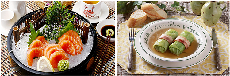 在日本料理的制作上,要求材料新鮮,切割講究,擺放藝術(shù)化,注重“色、香、味、器”四者的和諧統(tǒng)一,尤其是不僅重視味覺,而且很重視視覺享受。和食要求色自然、味鮮美、形多樣、器精良。而且,材料和調(diào)理法重視季節(jié)感。