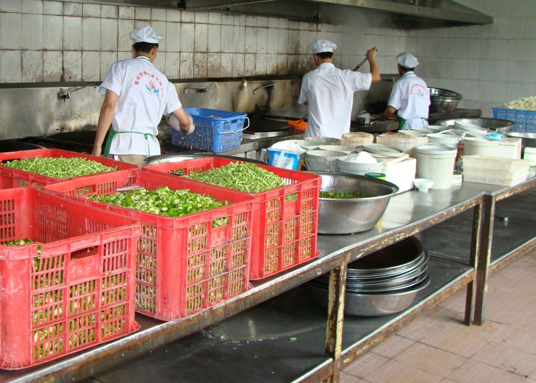 2800 people dining, 9.00 yuan / person. Day, a dirty two prime a soup, eat rice, water and electricity fuel factory responsible.